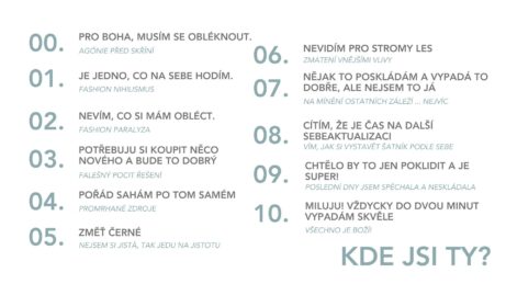 "Teď už přesně vím, co ve skříni zůstane a co pošlu dál a proč. Najednou vidím i nové kombinace a je to úžasný! Zjistila jsem, že už skoro všechno mám, stačí si s tím jen hrát. A dovolit si to nosit, protože i to byl dřív můj problém."